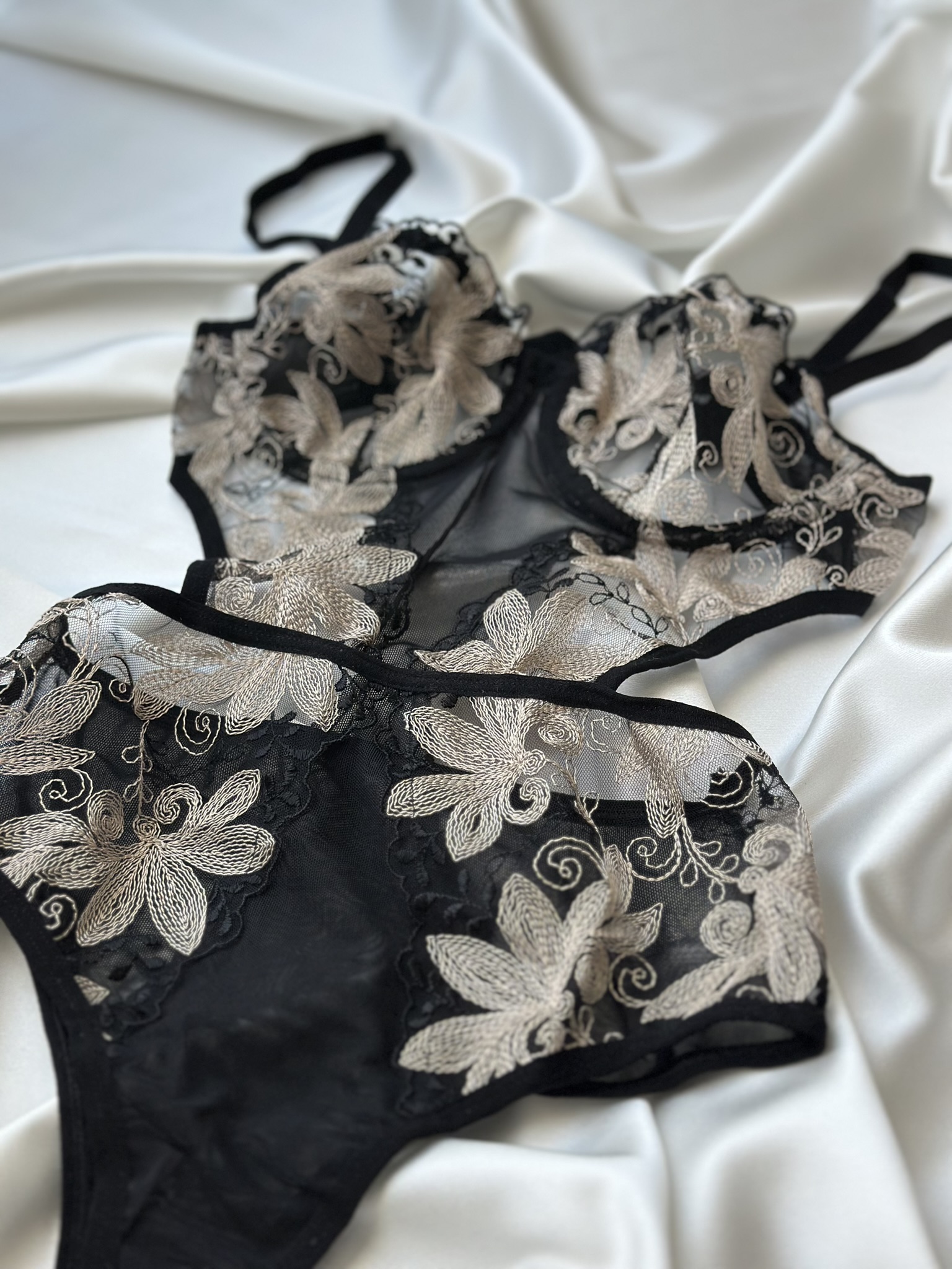 Be the first to review “Siyah Çiçekli Dantel Bodysuit”