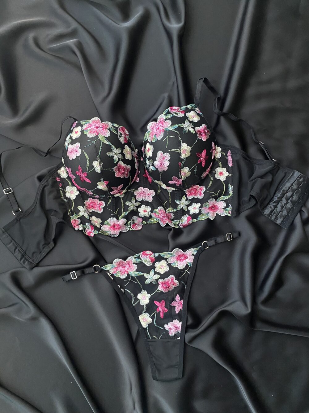 Be the first to review “Siyah Renkli Çiçek Desen Balenli Büstiyer Takım”